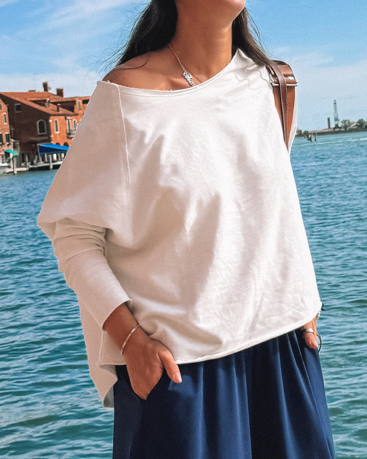 Buzo parte del set Milan, manga larga, cuello redondo y con las costuras expuestas, perfecto para usar en cualquier ocasión, puede usarse solo pero en set se ve increíble!