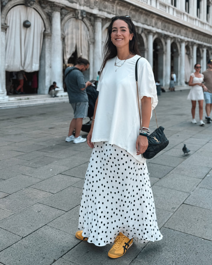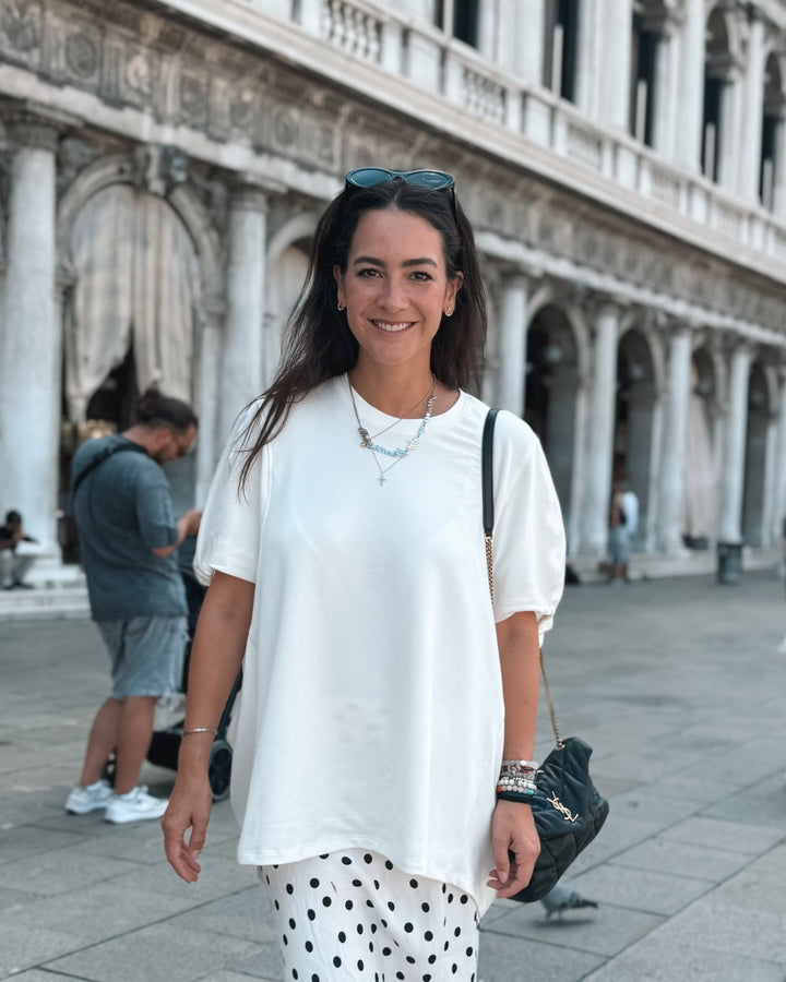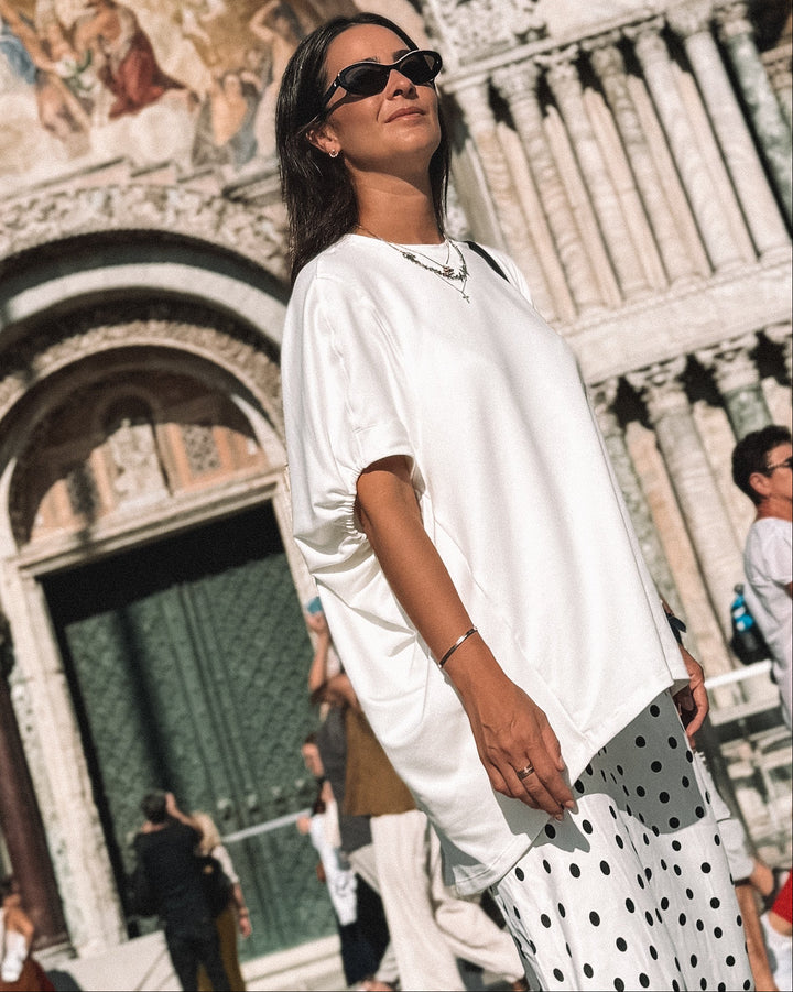 La Camiseta Bomba es un esencial elevado diseñado para transformar lo cotidiano. Su silueta amplia y fluida cae de manera natural creando un efecto asimétrico que estiliza, aporta movimiento y brinda un look effortless.
